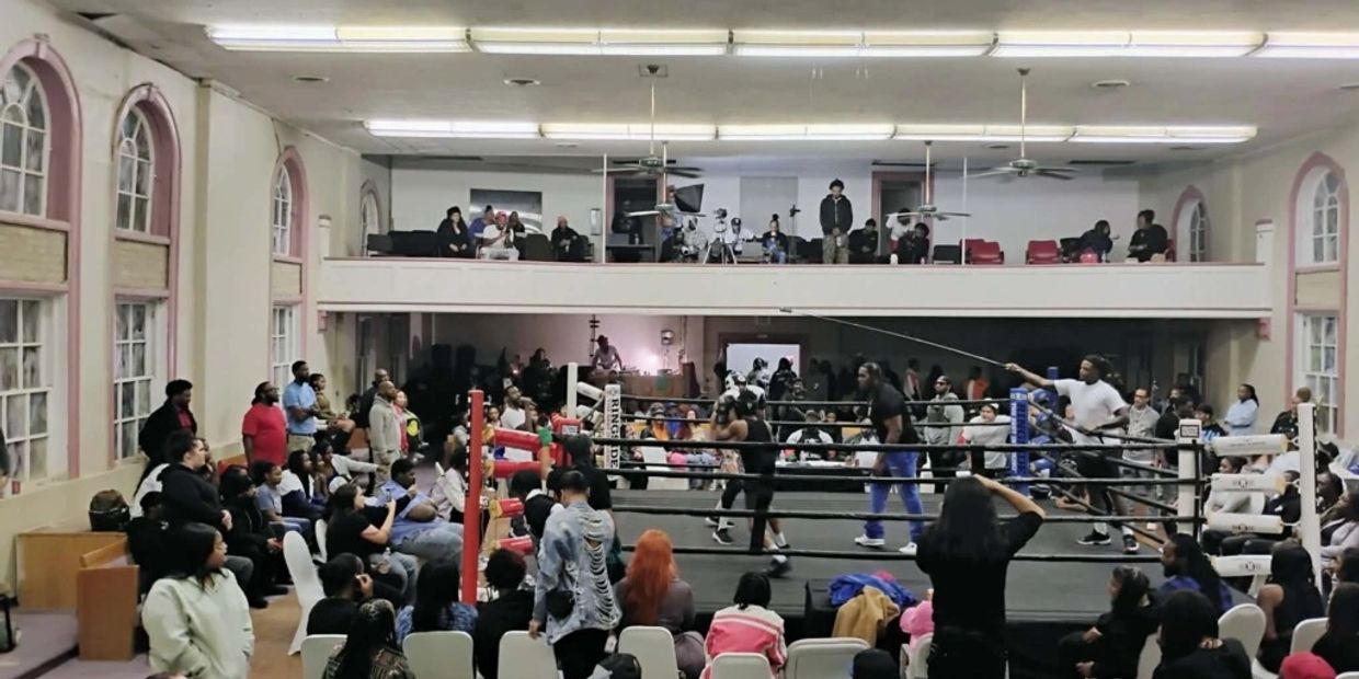 Tucked away in a historical auditorium across from Troost Park lies a recently purchased boxing ring. Directly in front of the ring sits Bishop Tony Caldwell, with a neatly trimmed beard, black-and-white vestments, and a perfectly fitted baseball cap, brandishing the cross. Bishop Caldwell is the founder of the Justice & Dignity Center (JDC), the nonprofit coalition Guns Down, Gloves Up, and proud owner of the boxing ring that is featured at the monthly event, “I love being here. Let me tell you, working with all these organizations and individuals is a blessing.